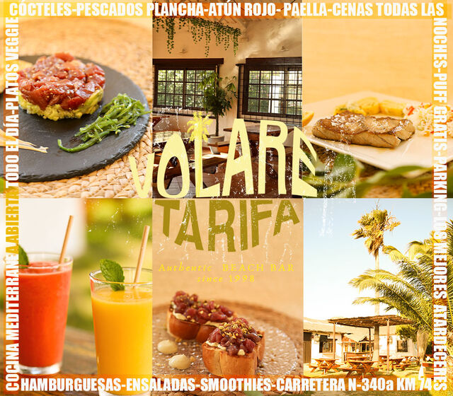 Si este año pasas por Tarifa y te gustaría vivir la experiencia Volare disfrutando de un maravilloso día repleto de momentos refrescantes. Dejamos mostrarte la verdadera esencia de TARIFA. ¡¡¡Es mucho más de lo que te has imaginado!!! Naturaleza, aguas cristalinas, buena comida, windsurf, Kite, SUNSETS que se te llena el alma y recargan de energía, deliciosos cócteles y todo bajo la Duna de Punta Paloma.